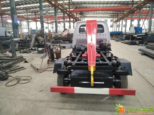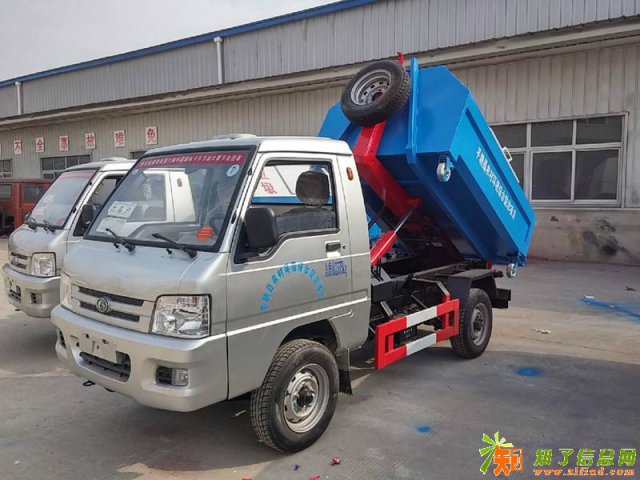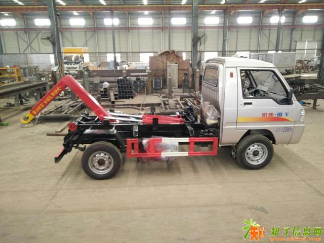 该车可将地下垃圾箱内的垃圾及垃圾箱一同拉至车上运走同时可自卸,降低了工人的劳动强度。该垃圾车的收运方式是目前世界上广泛采用的垃圾收运方式,可以实现一车多箱,大大降低了配备成本和空间等等;其专用装置的功能均以汽车发动机为动力,通过液压机构手动或电控来实现。车辆的箱体采用优质炭钢板全密封焊接结构,具有强度高、重量轻、不产生二次污染等优点。