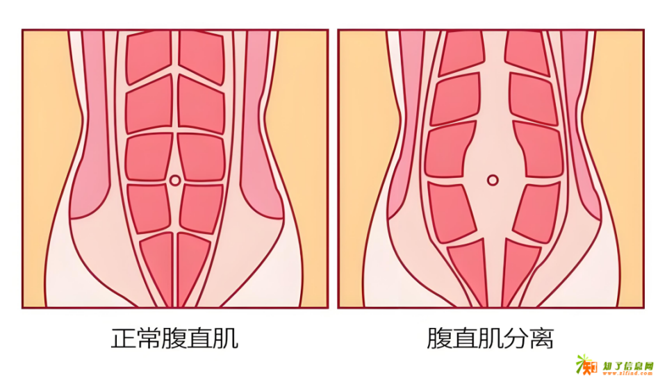腹直肌是腹部正中的肌肉群,由腹白线连接。怀孕期间,随着胎儿成长,腹部逐渐增大,腹白线被拉伸变薄,加上激素作用,结缔组织松弛,导致腹部肌肉无力,腹部内容物突出,形成“腹直肌分离”。