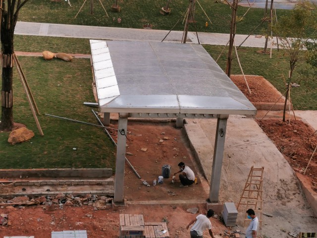 钢结铝板雨棚主龙骨架以钢结构为主,顶部采用铝板,铝板雨棚的优点:铝合金永远不生锈,不变形,也不用担心高空有坠落物掉下砸坏铝板雨棚,钢结构铝板雨棚是性价比最高的,寿命最长的雨棚,适合飞机场,银行,大型超市,政府工程,学校,酒店,别墅都可以