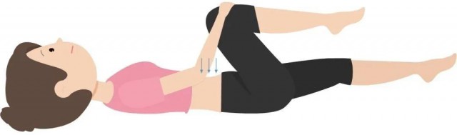 仰卧蹬腿:仰卧位,下巴微收,抬腿,双手扶住右腿小腿上方向胸口压。吸气准备,呼气时右腿慢慢向远处蹬出,吸气时停下,呼气时再慢慢把腿收回,可双腿交替进行。