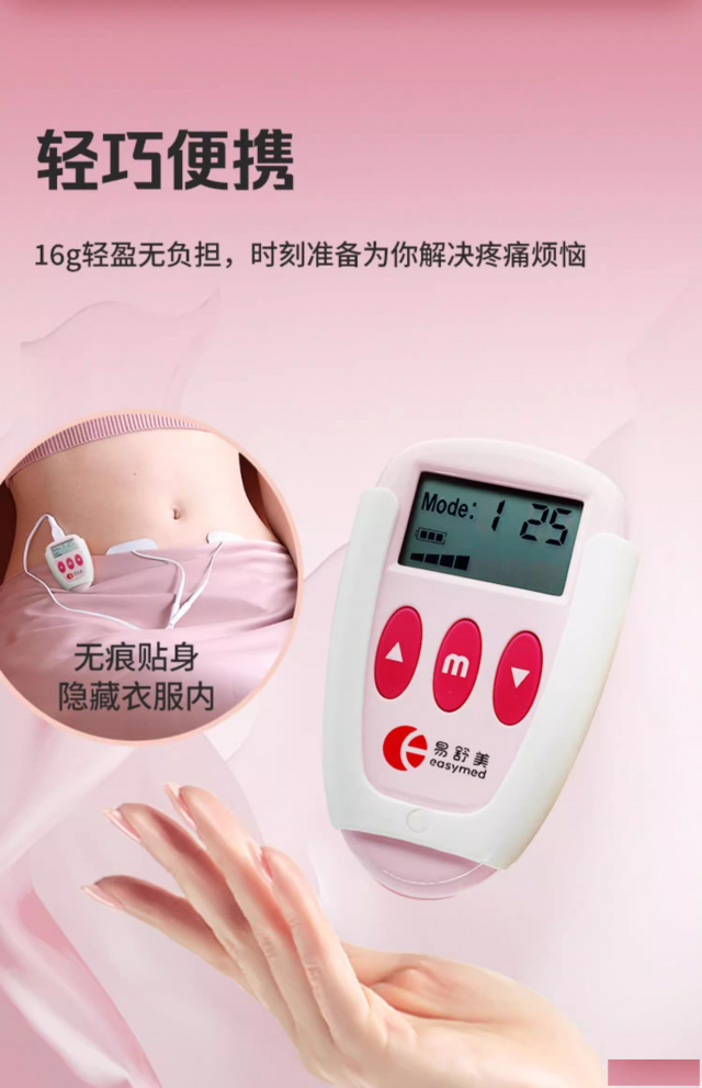 对于痛经较为严重的女性,可以尝试使用易舒美经期护理仪(又称痛经仪)。这款仪器通过贴敷电极片,能够深层有效地缓解痛经,每次仅需使用20分钟左右,效果可持续3-4小时,让你在不影响生活的同时轻松告别疼痛。其小巧便携的设计,无论是上班还是上学,都能随时使用,非常方便。