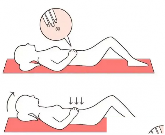 双手放在腹部两侧,轻轻抬起头部,感受腹直肌中间的凹陷。