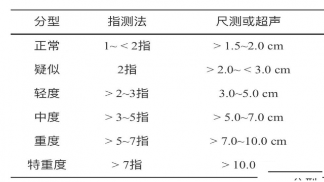 指测法与超声结果分型对比