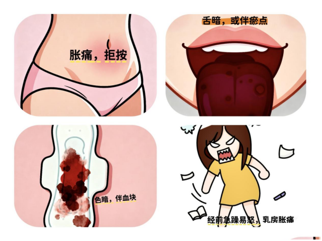 寒凝血瘀型的疼痛表现为冷痛、绞痛,热敷后能缓解。这类人平时怕冷,手脚冰凉,经血色暗有块。调理应温经散寒,可饮用生姜艾叶红糖水,艾灸关元、气海穴。