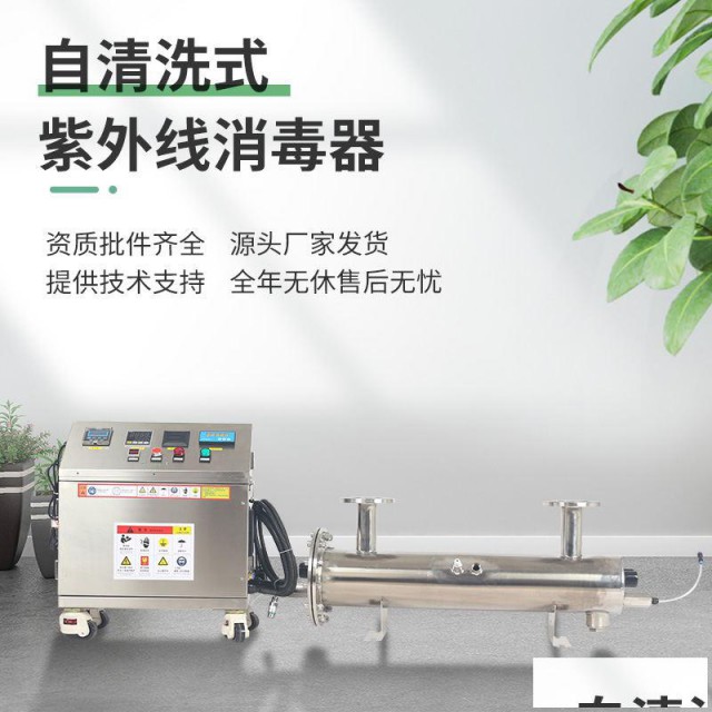 自清洗紫外线消毒器设备,操作简单,智能控制,自动清洗干净紫外线灯管套管。常规紫外线杀菌器(无清洗功能)运行一段时间后,内部紫外线灯管套管的表面会付着污垢,会影紫外线灯管套管的透光度,影响紫外光的照射,影响杀菌效果。根据水质情况,紫外线石英套管需要定期清洗,去除石英玻璃套管上污垢,而自清洗紫外线消毒器可以弥补常规紫外线的缺陷。
