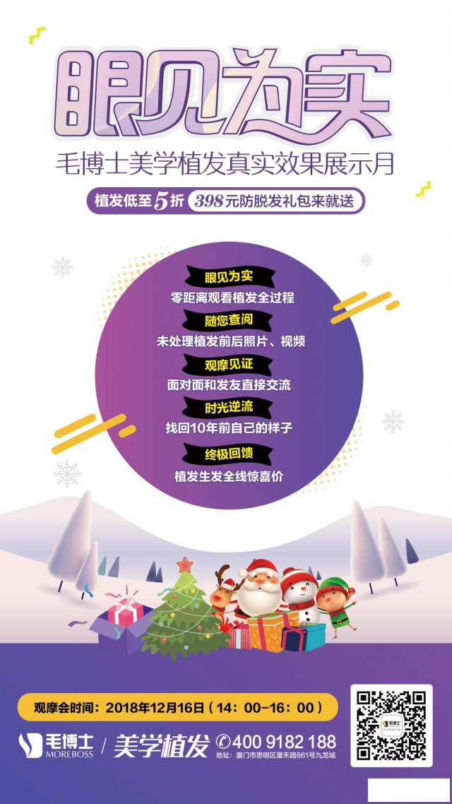 毛博士植发医院让12月充满了奇迹的色彩,定义为“毛博士美学植发真实效果展示月”,不仅仅有观摩,甚至还有礼包等哦。