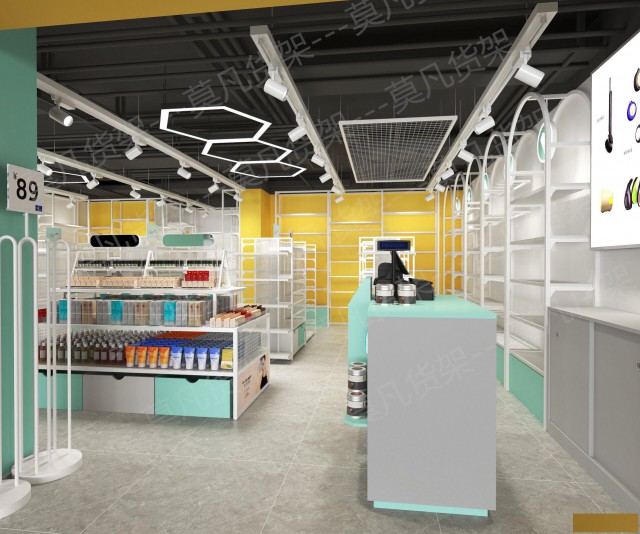 类型全覆盖:靠墙架、中岛架、展示柜、收银台一体化定制。