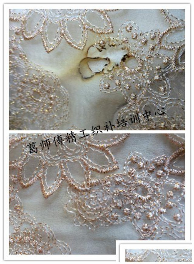 葛师傅织补20年,自学精工织补各种布纹花纹原纹织补,羊毛衫,羊绒衫各种破洞精工织补,无痕织补。羊毛衫,羊绒衫各种纹路收口技术,身长,袖长,领口改短无痕技术。近年,自创羽绒服无痕仿补技术,蕾丝无痕织补技术。雪纺,真丝,蚕丝抽丝修复技术这三项技术都是领先技术。牛仔裤无痕仿补,皮衣织补,貂皮无痕织补,绣花,绣补等技术。