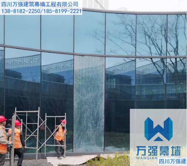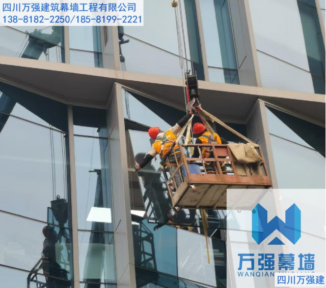 安装新玻璃幕墙时,四川万强同样秉持高标准。选用优质的玻璃及配套材料,充分考量幕墙的隔热、隔音、防水及安全性能。施工人员依据精确测量的数据,精准定位每一块玻璃,确保横平竖直、面平。在固定玻璃时,严格把控压块间距,保障固定牢固。玻璃安装完毕后,精心处理四周胶缝,填充泡沫棒、贴上美纹纸,用玻璃胶枪均匀打胶并压实,使胶缝不仅密封良好,而且美观顺滑。