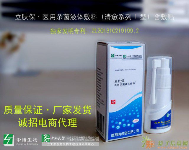 立肤保采用Electrochemical Biotechnology生产的一种强效、广谱液体敷料。是一种高科技专利产品;一种安全高效杀菌生物制剂;一种可减少抗生素使用的新型液体敷料。主要用于杀灭清除各种范围的致病原;致病性的或抑制慢性伤口愈合的细菌、病毒、真菌、孢子、支原体以及细菌的抗生素耐药菌株等。