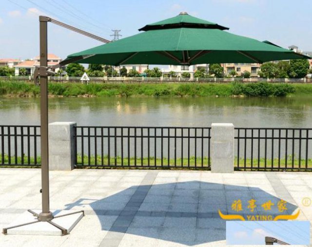 8、产品特点:产品采用优质涤纶色织布,不易褪色,防晒、防紫外线,持久耐用。整体结构结实稳固,加厚加粗的铝合金骨架,经过高温烤漆,不易生锈。伞柱单边独立,具备100%的空间利用率,避免了传统遮阳伞在使用中要在桌子中间穿孔的麻烦和尴尬。