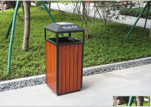 3、表面处理:垃圾桶本身经喷砂处理去油去锈后,钢板表面及木条再采用防腐防蛀处理,抗紫外线多层喷涂