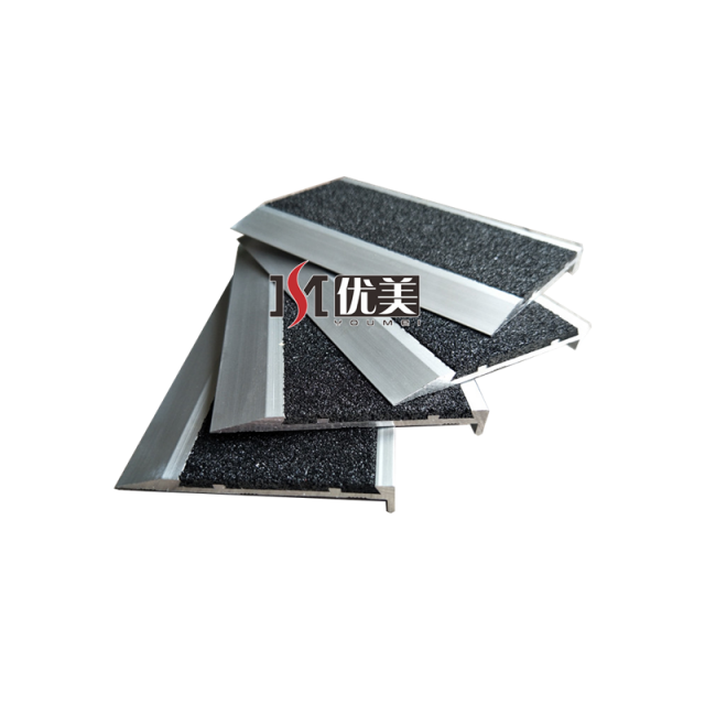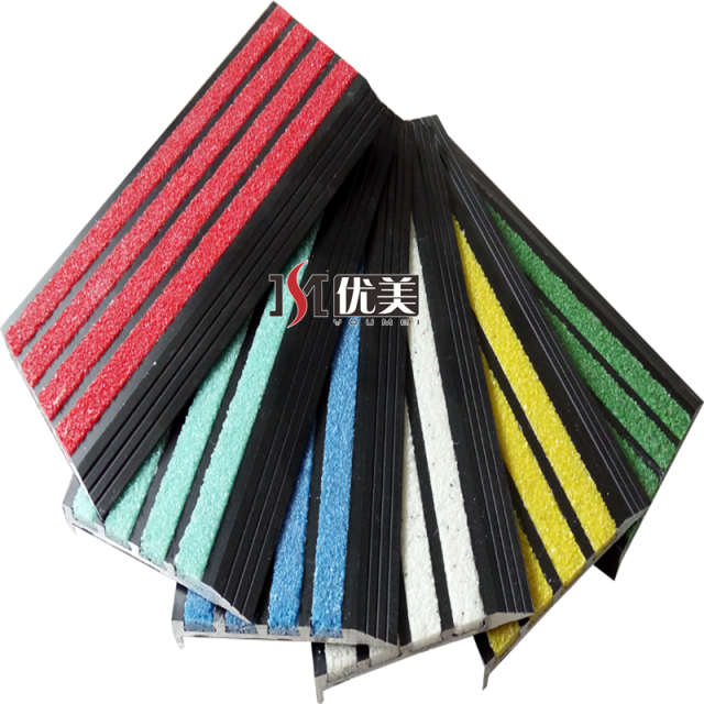 我们优美铝合金楼梯防滑条、楼梯防滑条、防滑条、铝合金防滑条可另开模具。优美建材有限公司是一家从事防滑产品生产及应用的企业,公司业务涉及有楼梯踏步金刚砂防滑条,楼梯铝合金金刚砂防滑条,防滑贴及金刚砂瓷砖防滑条等产品的研发、生产、销售、技术咨询和服务业务。我司拥有的检测设备,拥有多年经验丰富的技术专家以及严谨的产品开发程序,致力于开发未来型产品,楼梯平面和立面应呈90度,先将楼梯台阶清理干净,在楼梯前缘和包角止滑条背面涂上胶,等略干后粘合,用橡皮锤锤击一下粘合处,即可。或者在铝合金底座上打孔,用螺丝将铝合金防滑条固定在楼梯面上,后再表面插上胶条即可。注:大理石,瓷砖等不容易打孔的材质上推荐使用胶固定。其余材质建议使用自攻螺丝和膨胀管固定。如搭配*包角金属扣固定住包角两边,在防止包角止滑条收缩及脱落的同时也达到**美观的效果。优美建材有限公司是一家从事防滑产品生产及应用企业,公司业务涉及有楼梯踏步金刚砂防滑条,楼梯铝合金金刚砂防滑条,防滑贴及金刚砂瓷砖防滑条等产品的研发、生产、销售、技术咨询和服务业务。我司拥有的检测设备,拥有多年经验丰富的技术专家以及严谨的产品开发程序,致力于开发未来型产品,铝合金防滑条,是有双层构造组成,底部由加工而成,表层为金刚砂。一般表层金刚砂胶条可有多种颜色可供选择。由于铝合金密度低,接近或钢。所以铝合金防滑条。而且相比起木质、塑料的防滑条而言,色彩更艳丽多彩,适用于各种材质大小的楼梯表面。目前在大型商场、医院、学校、影院、写字楼等场所都随处可见。
