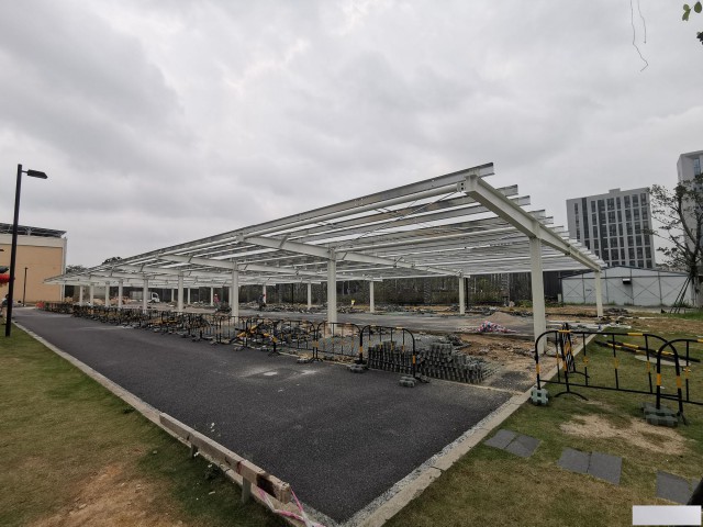 它通常由钢结构框架和安装在其上的光伏板组成。钢结构框架可以提供坚固的支撑,确保停车棚的稳定性和安全性。光伏板则可以吸收阳光并转化为电能,实现可再生能源的利用。