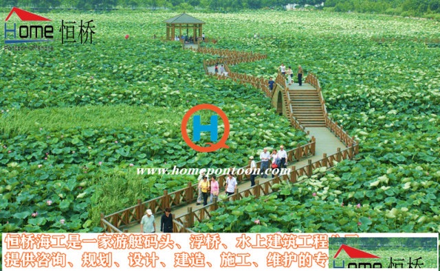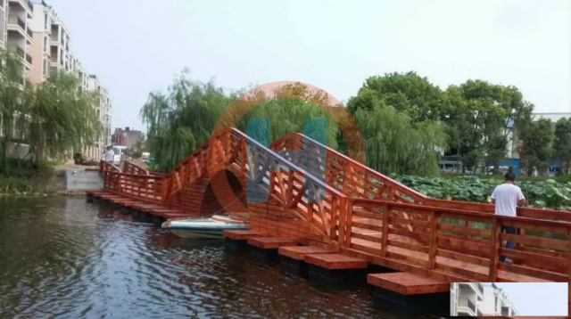 近年来经济的发展带动人类的新需求,浮桥几乎没有被用于渡水工具,而更多的是用于观光走廊——景观浮桥。景观浮桥和普通浮桥有很大的不同,普通浮桥产生浮力的一般是船,将船连在一起然后铺上木板并打桩固定就成了一座浮桥用于做渡水工具。景观浮桥比普通浮桥要先进精细的多,景观浮桥产生浮力的一般是浮箱,浮箱有塑料浮箱和混凝土浮箱之分,浮箱上面铺的是防腐木面板,为更利于人们游玩观赏而做的浮桥。