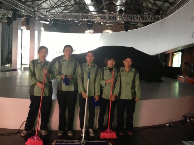2、(展会,展厅,展览会)客流量大,作业时要十分注意扫帚拖布等工具不能碰到顾客,不要影响顾客游逛,不要引起顾客反感。