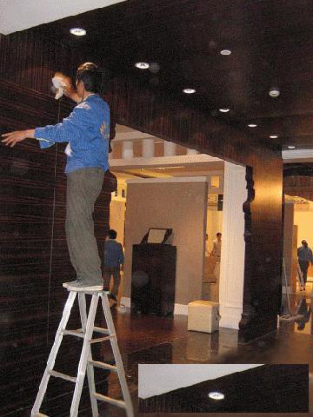 把所有的做完以后,后就是地面的清洗了。清洁前,需要分清楚地面是木地板、瓷砖还是石材的,根据材料选择清洁剂稀释清洗。地面上的胶渍可用刀片清除,顽固的可用去胶剂处理;而对于地脚线,可用用毛巾擦拭,用刀片去掉各种胶迹、涂料点等