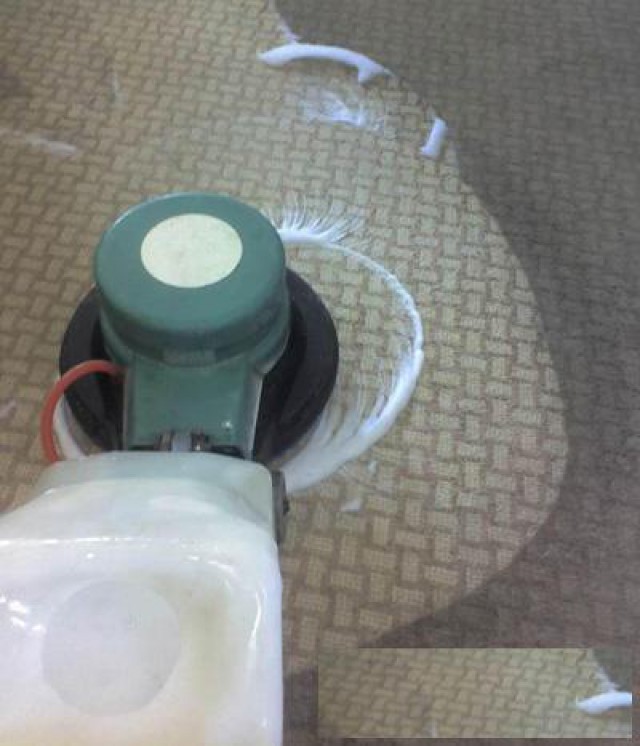 4) 用板刷加清洁剂手动刷洗地毯上残留的污垢,直至清除干净。