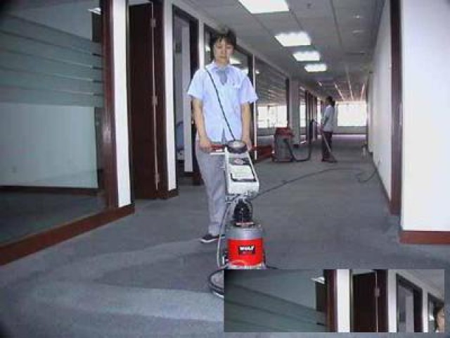 5、用装有打泡器、地毯刷的单盘扫地机,以干泡刷洗地毯