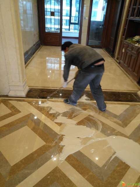 3、研磨抛光:采用磨片由粗到细进行研磨,地面光滑平整、石材晶粒清晰为宜。
