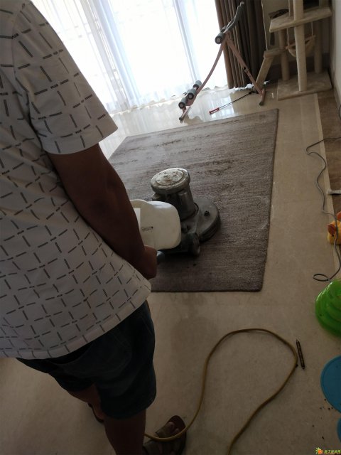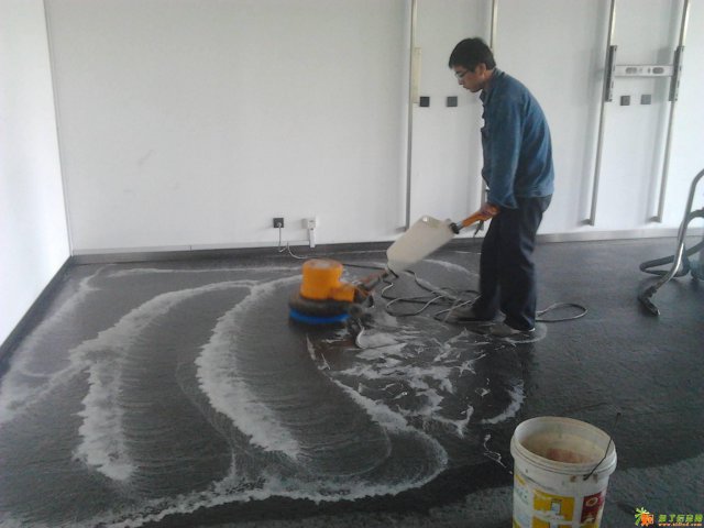 4:在清洗地毯的同时,用吸水机吸净已洗完的地毯。
