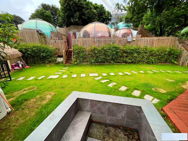 从化区温泉镇旅游区附近有1亩庄园民宿小院整体转让,使用期限:长期使用。一次性转让价格73万元,土地总占地面积1亩,有六间星空房民宿,有露天泡池,房间4.5米X4.5米。,全每一间星空房屋配有空调、风扇、床铺、电器等设施设备齐全、拎包入住,是独门独院,水电齐全,房屋可以对外营业,也可以自己居住,地上种有味荔枝、龙眼、黄皮、绿化树等果树。周围环境优美,空气好,水源好。周边是旅游景点、酒店、旅业、旅游餐厅、餐馆、农村特产店、商场、山庄、农庄,乡村民宿等,附近就是温泉镇灌村墟镇,拥有休闲养生的优美景色,墟镇人口多,有在旅游区附近,旺中带静,静中带人气,附近又有闻名旅游景点白水寨旅游风景区和石门公园旅游区。交通方便, 开车可以到农庄地块边,有从莞深高速从化温泉灌村出口。此农庄地块适合家庭住宅、私家花园,休闲养生养老、休闲度假、休闲山庄、旅业餐饮、乡村民宿、朋友聚会,私人会所等等