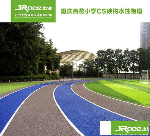 高环保性的水性跑道,广州杰锐体育经过多年专1业技术团队研发而成CS碳构水性跑道,它以以水性树脂作为粘结剂+环保颗粒作为主打材料,并利用水性树脂的稳定碳键结构,让水性跑道在抗1紫1外1线、抗⽼化性以及保⾊性明1显优于普通聚氨脂材料,可铺装在学校、体育⽐赛场馆等场地,安1全系数更加的高。