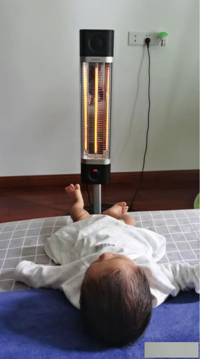 而且,它的光线是柔和的红外线,不像普通取暖器那样刺眼,晚上开着也不会影响我和宝宝的睡眠。