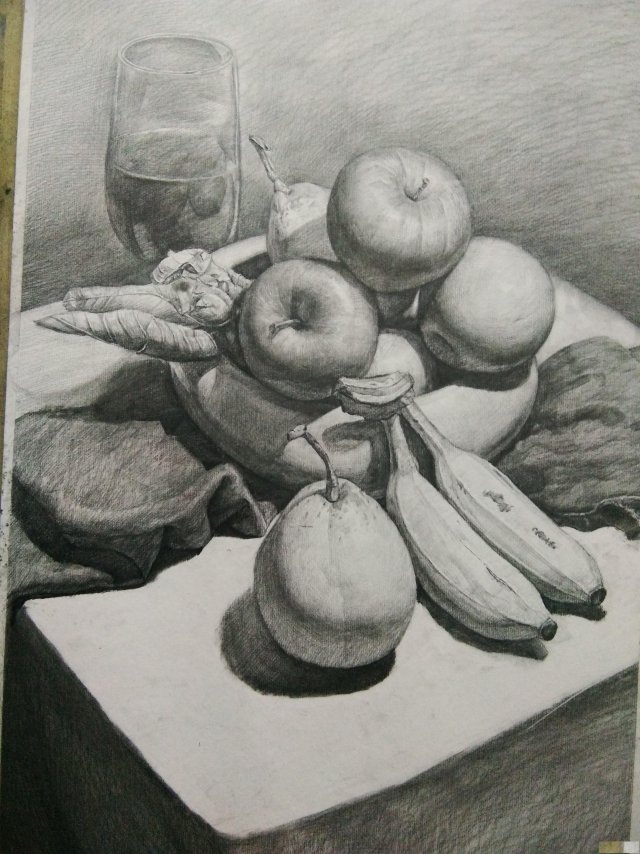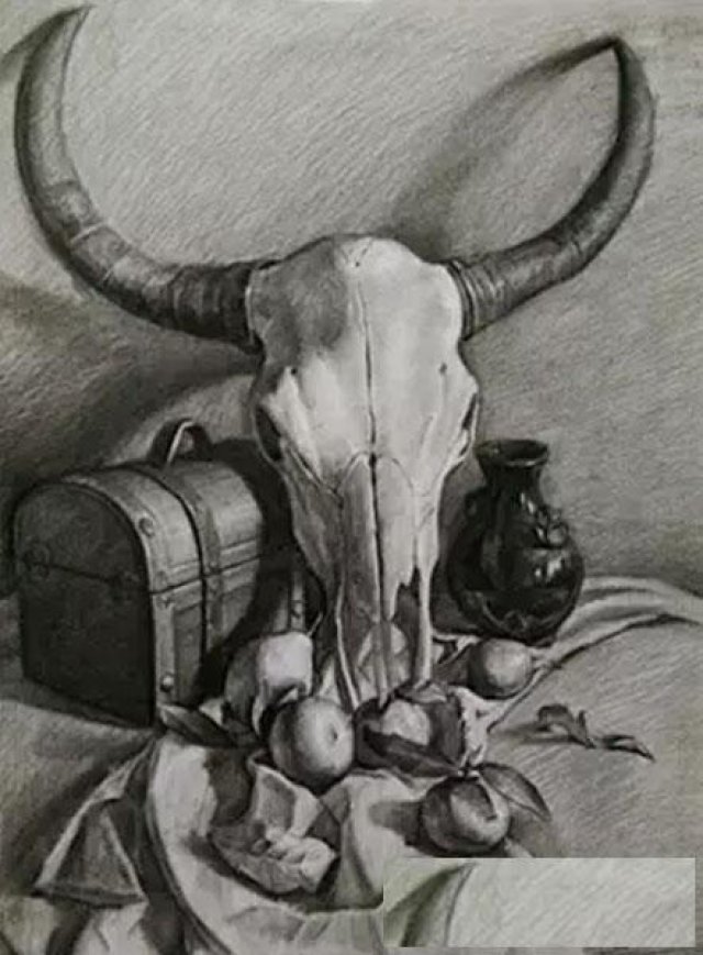 静物阶段则是训练我们的观察能力,绘画一些我们身边常见的物体,练习不同质感,不同纹理的物体,能够达到见到一个东西就可以基本上了解其结构,将此物体画下来的能力。