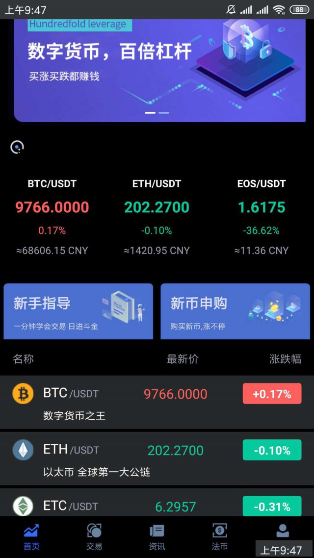 显示法币,币币,杠杆总额,链上更新,打入手续费