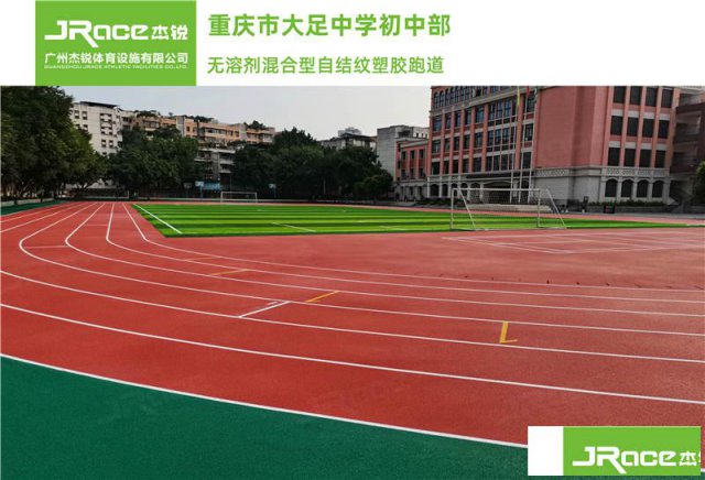 无溶剂塑胶自结纹跑道是由特种聚氨酯纯胶浆通过化学反应形成的聚氨酯共聚物,然后在表结状态下自动生成凹凸均匀的纹理来达到一定的摩擦系数从而满足防湿滑等指标。这款跑道它采用的目前时髦的双组份结构,通过双组份自交联实现溶剂的杜绝。在整个施工的过程中不需要添加各类对人体有害的有1机催化剂,是款绿色环保的健康跑道。