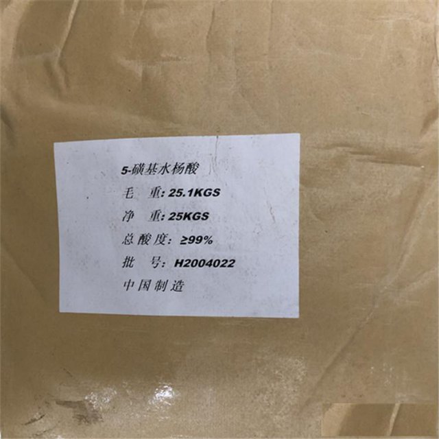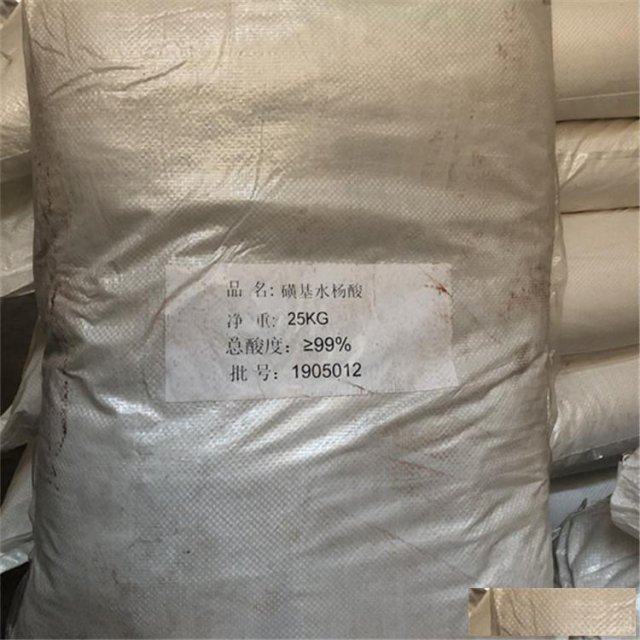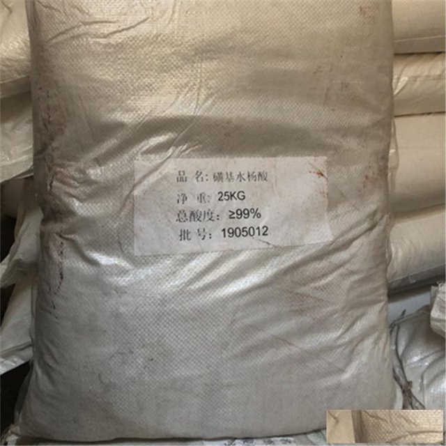 产品名称与性质:磺基水杨酸,5-磺基水杨酸,含量99%,浅灰色粉末结晶体。