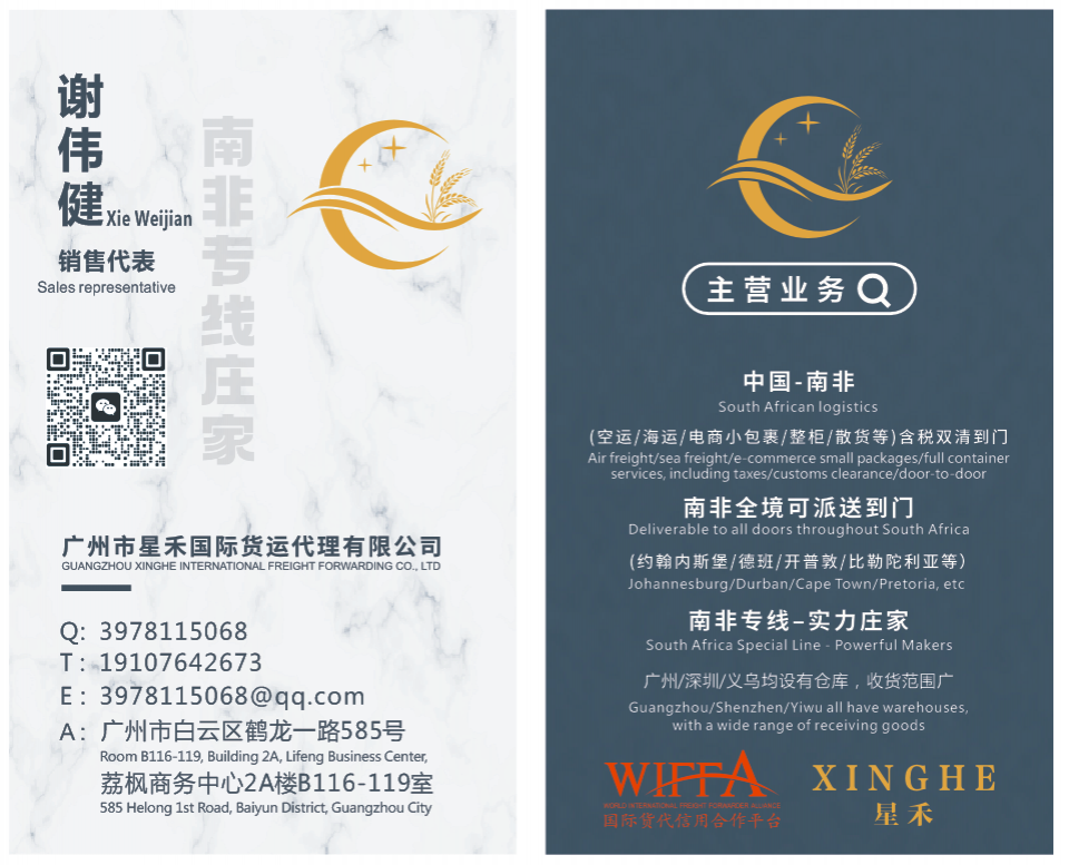 广州星禾国际货运专注南非物流十余年,以自建海外仓与专业清关团队为核心,打造从中国至南非全境的一站式物流通道。为跨境电商及贸易企业提供安全稳定、高效便捷的物流解决方案。