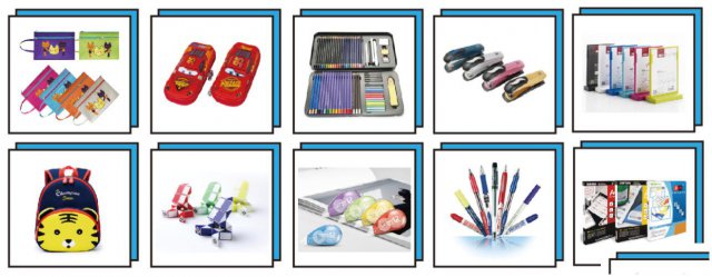 ● 文具及办公用品:书写工具、纸制品、办公用品、学生用品、美术用品、益智文具
