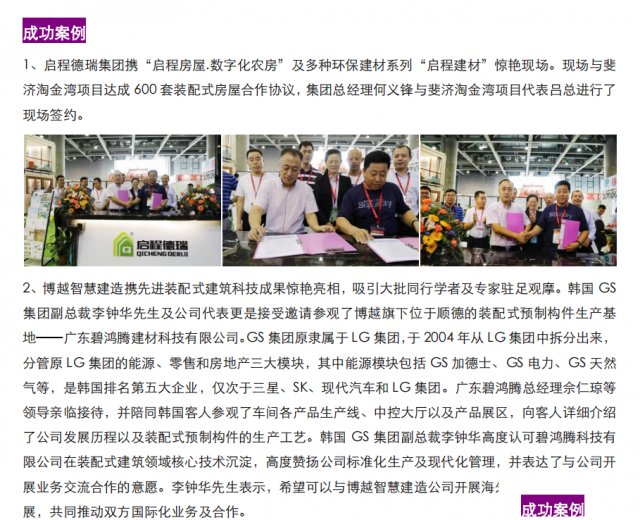 广州住博会作为代表广东省装配式建筑(住宅)产业最高水平的国际展会,以“持续、健康、绿色”为主题,帮助建筑企业向世界输出技术和模式,致力于搭建国内外参展商、投资商、规划、建造、运营等企业和采购商的交流平台。本次展会继续得到住房和城乡建设部科技与产业化发展中心的高度重视,并吸引了近400家中外建筑业名企、国家级装配式建筑产业基地、广东首批装配式建筑产业基地、代表性建筑设计工程企业展示先进技术和产品,涉及地产开发、勘察设计、施工监理、旅游景区、共享农庄、营地建设、特色小镇、民宿酒店、商业综合体、田园综合体、园林景观及新农村建设等示范性项目。五馆联动,同期展览面积超5万平方米,专业观众突破80000人次,其中海外观众6000多人次。