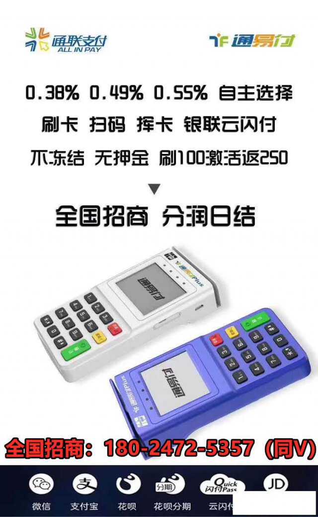 刷卡费率:0.49% 0.55%,微信、支付宝、花bei扫码更高单笔2万,费率低至0.38%