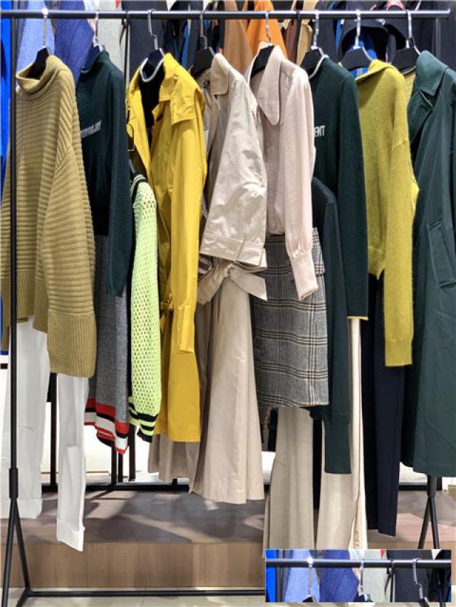产品比例:豪华皮草0.5%,羽绒服5.5%,高端双面尼9%,大衣棉衣1.5%,风衣外套9%,连衣裙19%,搭配套装3%,毛衣13%,上衣19.5%,裤子20%