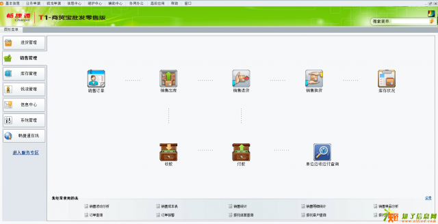采购管理、销售管理、库存管理、钱流管理及决策分析等。