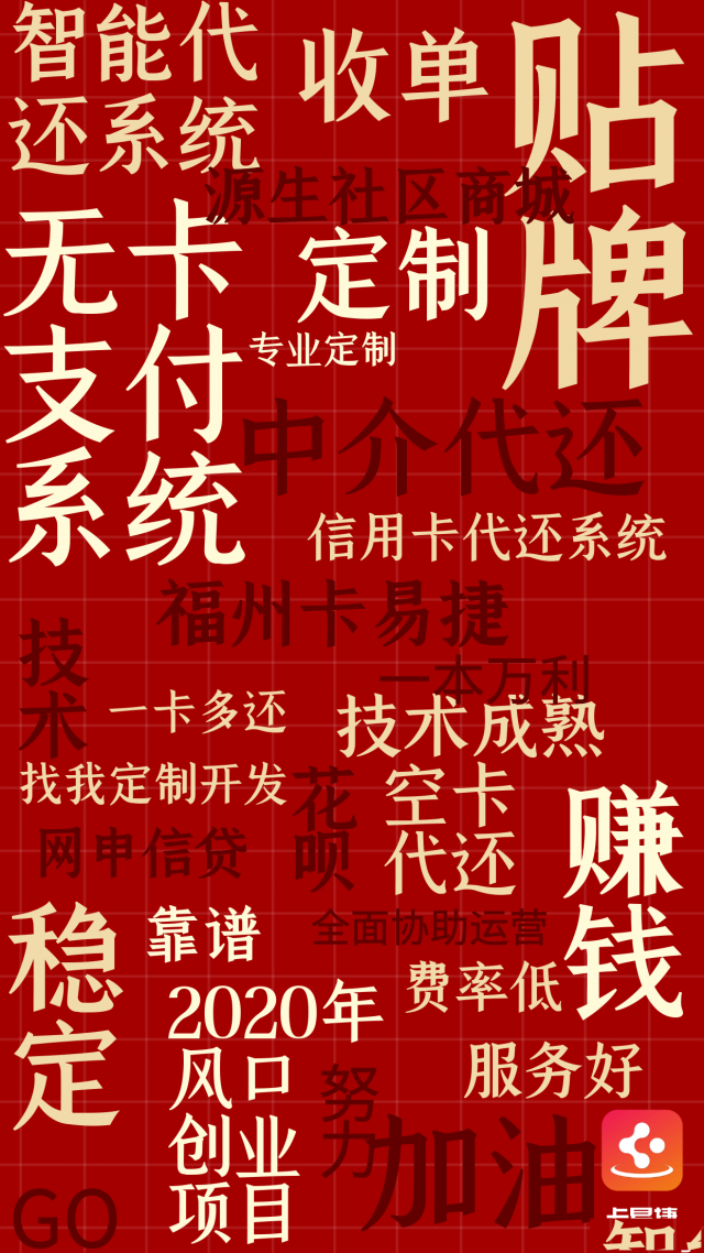 福州卡易捷网络科技公司—为您量身打造搭建属于您自己的智能还款系统。我们拥有强大的技术开发团队与售后团队,一对一服务。还会帮您整理一整套市 场开发思路,定制专属PPT,网站,公众号等等,专业培训。让您无后顾之忧。而且根据市场数据反馈,定期更新各种功能让您永远走在市场的最前沿!