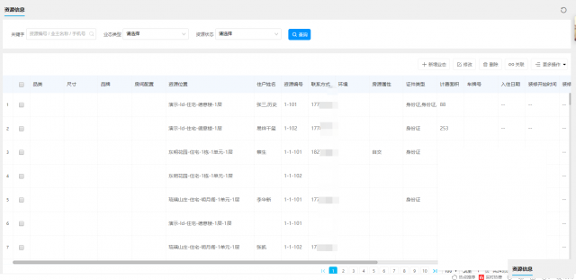 记录每个住户的基本信息,包括户主,房间数,单元信息,楼层
