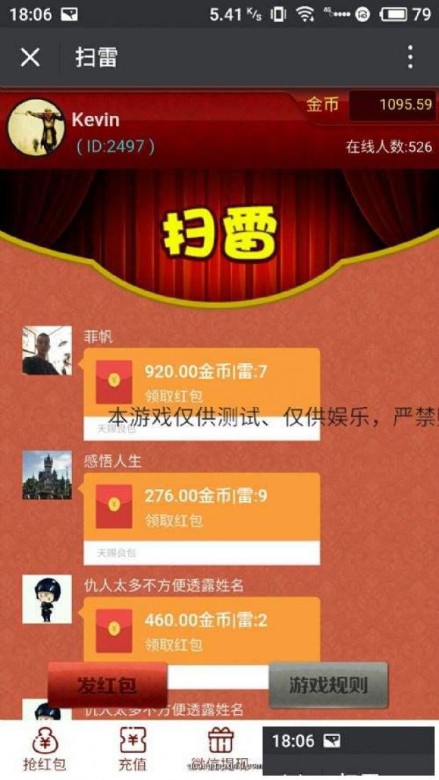 (3)用户在2倍区发包的时候输入10元,7个包,尾数5为雷