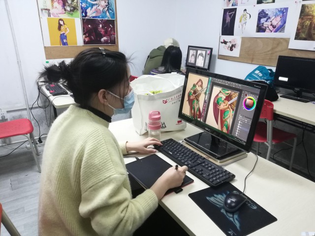 本课程以严格的造型训练为学员在前期解决形体,比例,透视等基本的造型问题,后期掌握主流的游戏电脑美术制作工艺,手绘板绘画流程,ps,pt,sai等绘图软件绘画技巧,由从事游戏原画工作多年的一线原画师担当主教教师,经验丰富,主要让学员了解熟悉网络游戏美术,游戏人设,场景设定,三维游戏美术,卡牌游戏美术等风格和制作方式,使得学员能够更快的融入游戏美术工作环境,掌握技巧和制作经验,更快的在工作中上岗,胜任相应的工作岗位。学习效果:
