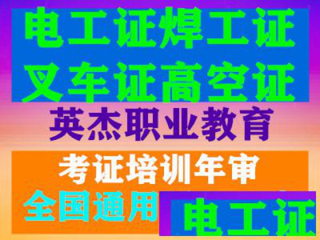 特种作业英杰教育培训电工证、焊工证、叉车证、高空证、起重机、吊机、挖掘机等特种作业证培训考证年审,通过率高,有考证班,学习班,VIP班,随到随学,学会为止,证都是全国通用国网可查,电话联系可在网上报名