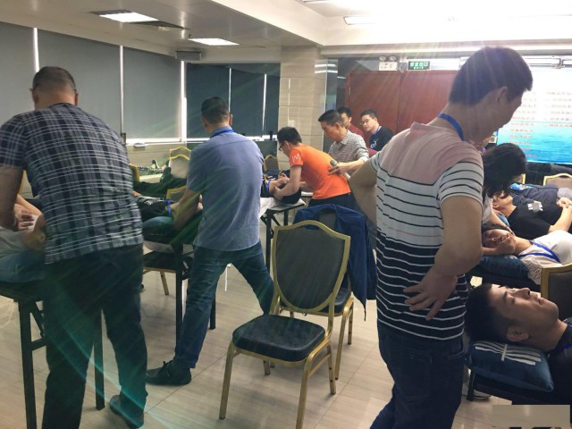1、段俊峰教授亲自手把手教学、2人一组手法练习。