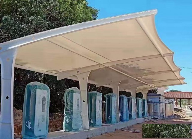 广州的未来环保:安装设计膜结构车棚,充电桩车棚,光伏板车棚