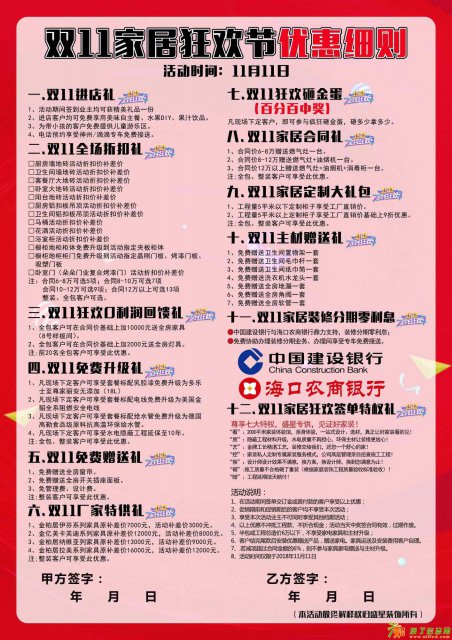 海口盛星装饰“双11”家居狂欢节,活动时间于2018年11月11日正式开启,狂欢有优惠,豪礼送不停,(精美礼品、定装修、砸金蛋、家电、家居、灯具、百万优惠等你抢),错过要再等一年。