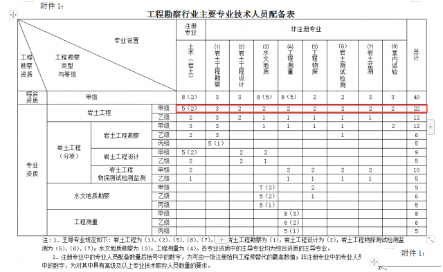(1)专业配备齐全、合理。主要专业技术人员数量不少于 “工程勘察行业主要专业技术人员配备表”规定的人数。