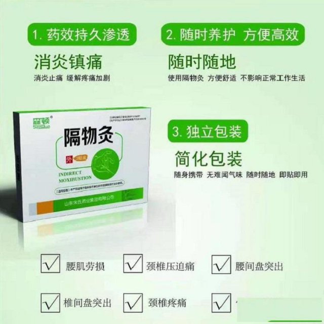 本适用于临床单位医疗单位的传统隔物灸疗法使用。(该产品适用于颈椎病、肩周炎、骨质增生、腰椎间盘突出、腰腿疼、跌打损伤、风湿关节炎等引起的疼痛,和女性暖宫作用)。
