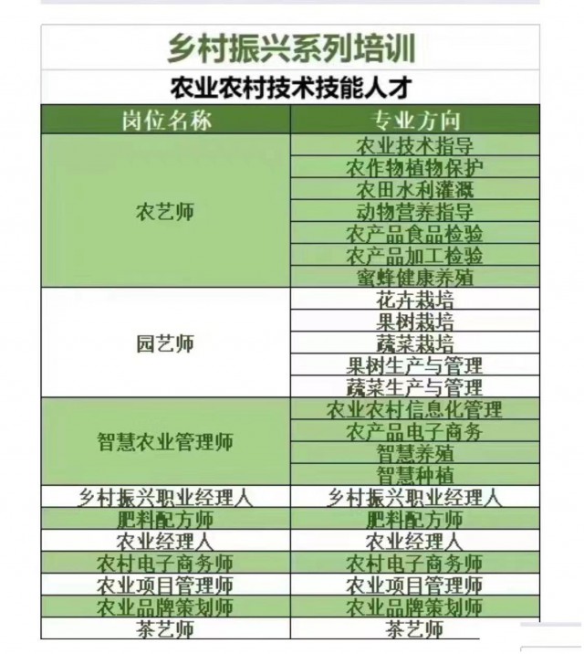 专业:农艺师,茶艺师,园艺师,农业经理人,肥料配方师等等