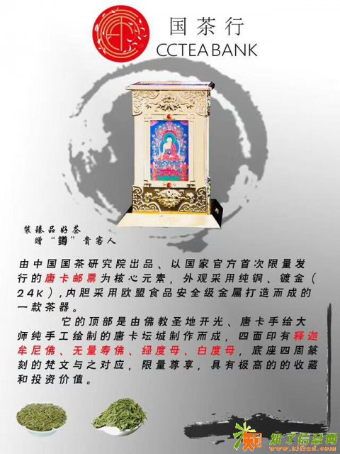1.唐卡茶鐏是由我们国茶行独家发行的产品,受国家专利和商标保护。唐卡茶鐏本身是由贵金属打造,分为镀金和纯银两个版本,鐏体四周嵌入唐卡题材的邮票。具有极高投资收藏价值现实价值。